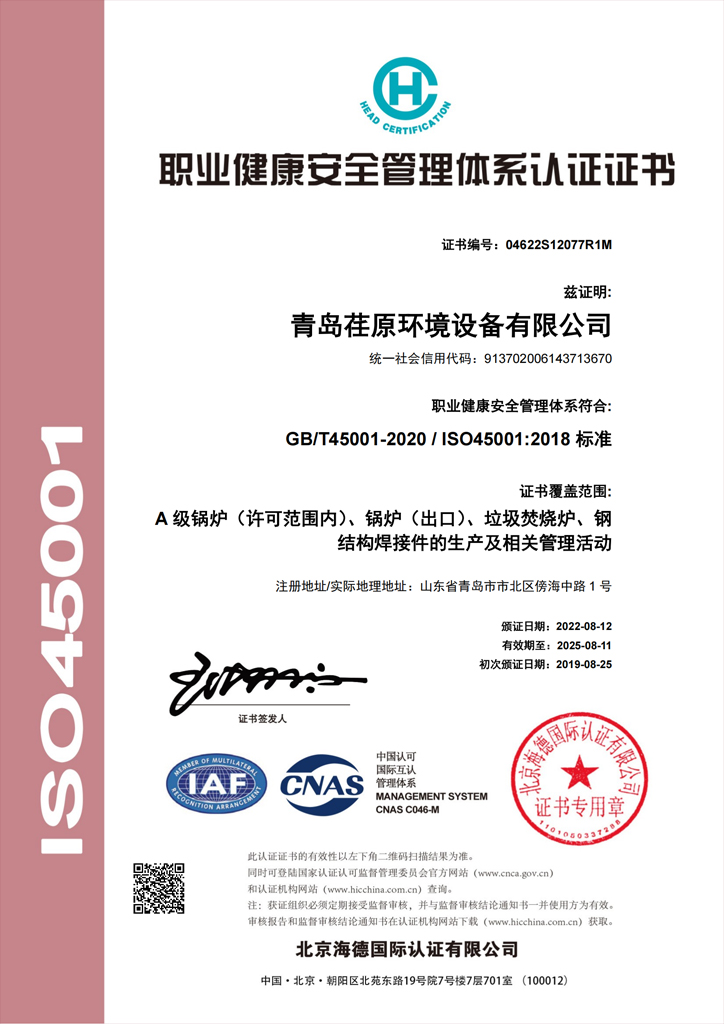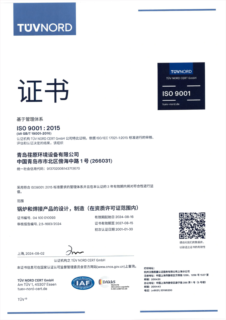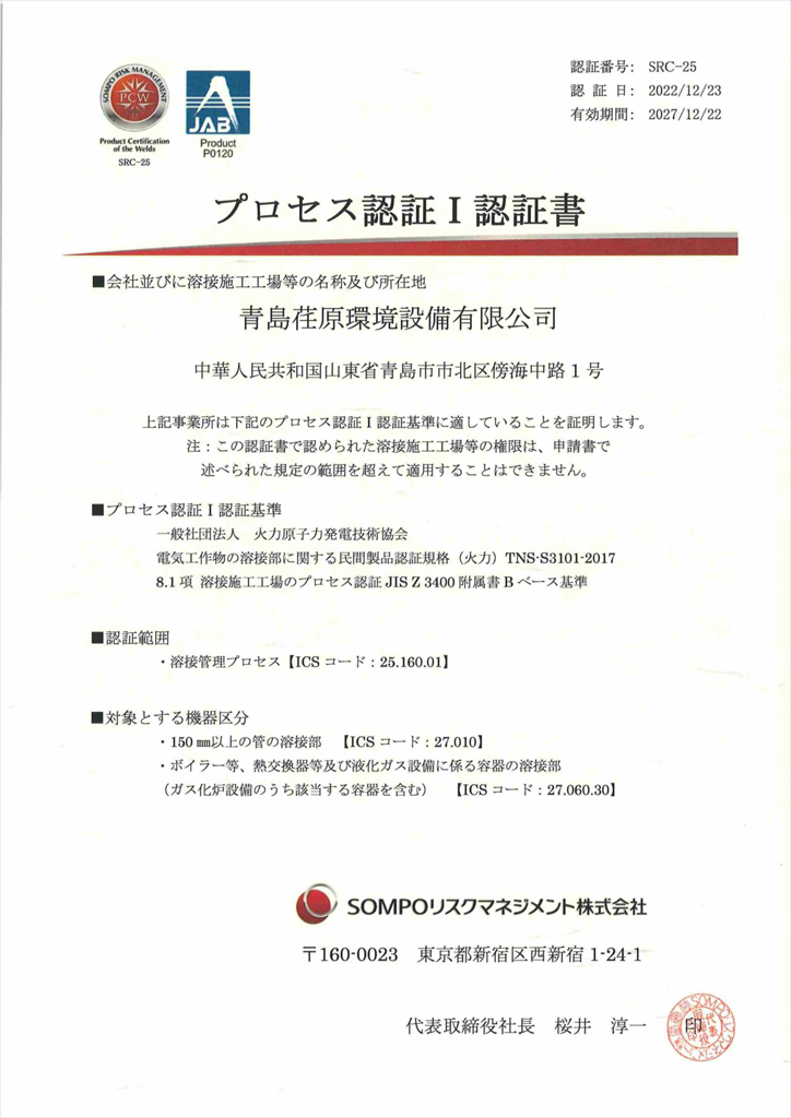 2025年1月1日に吸収合併された青島荏原環境設備有限公司は1992年に設立され、国家A級ボイラー製造許可、ASME(S&U)証明書及びISO 9001/ISO 14001/ISO 45001などの多種資格認証を取得した。