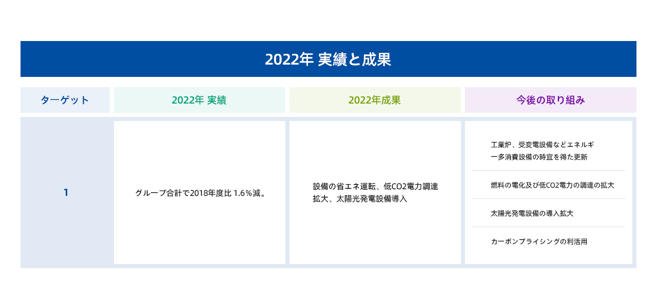 グループ内事業活動における温室効果ガス総排出量を2018年度比 55%削減します。